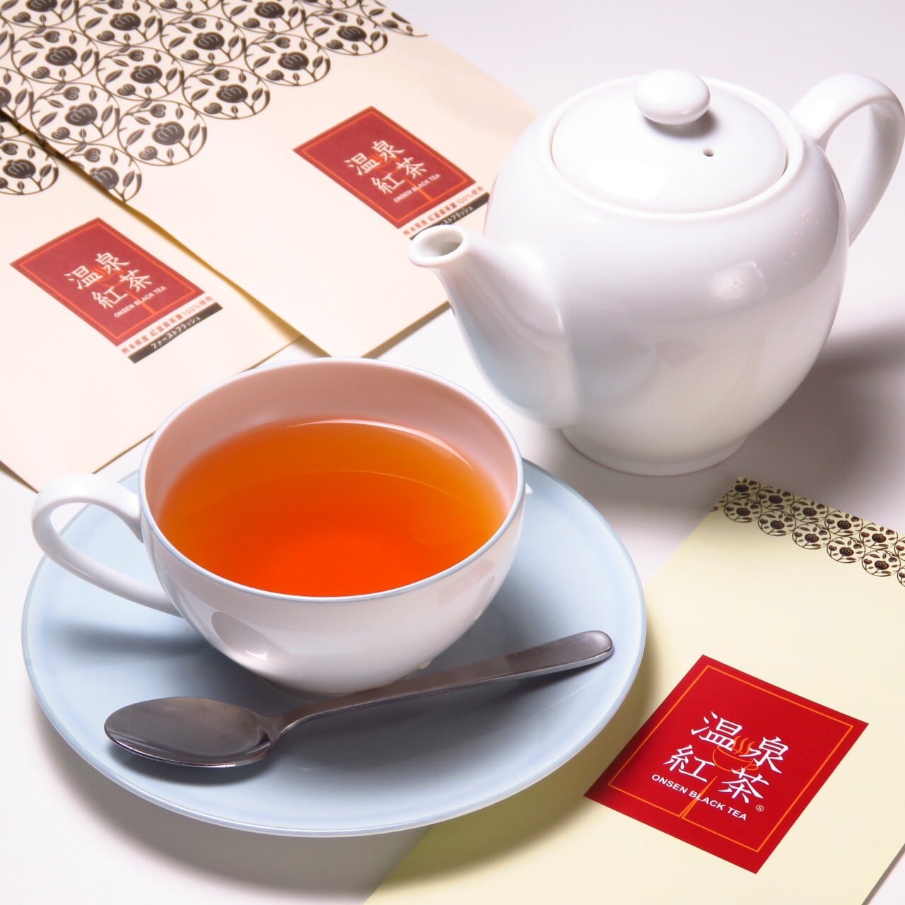 熊本県山鹿市産の茶葉と山鹿温泉の温泉水を使い革新的製法でつくられた「温泉紅茶」
